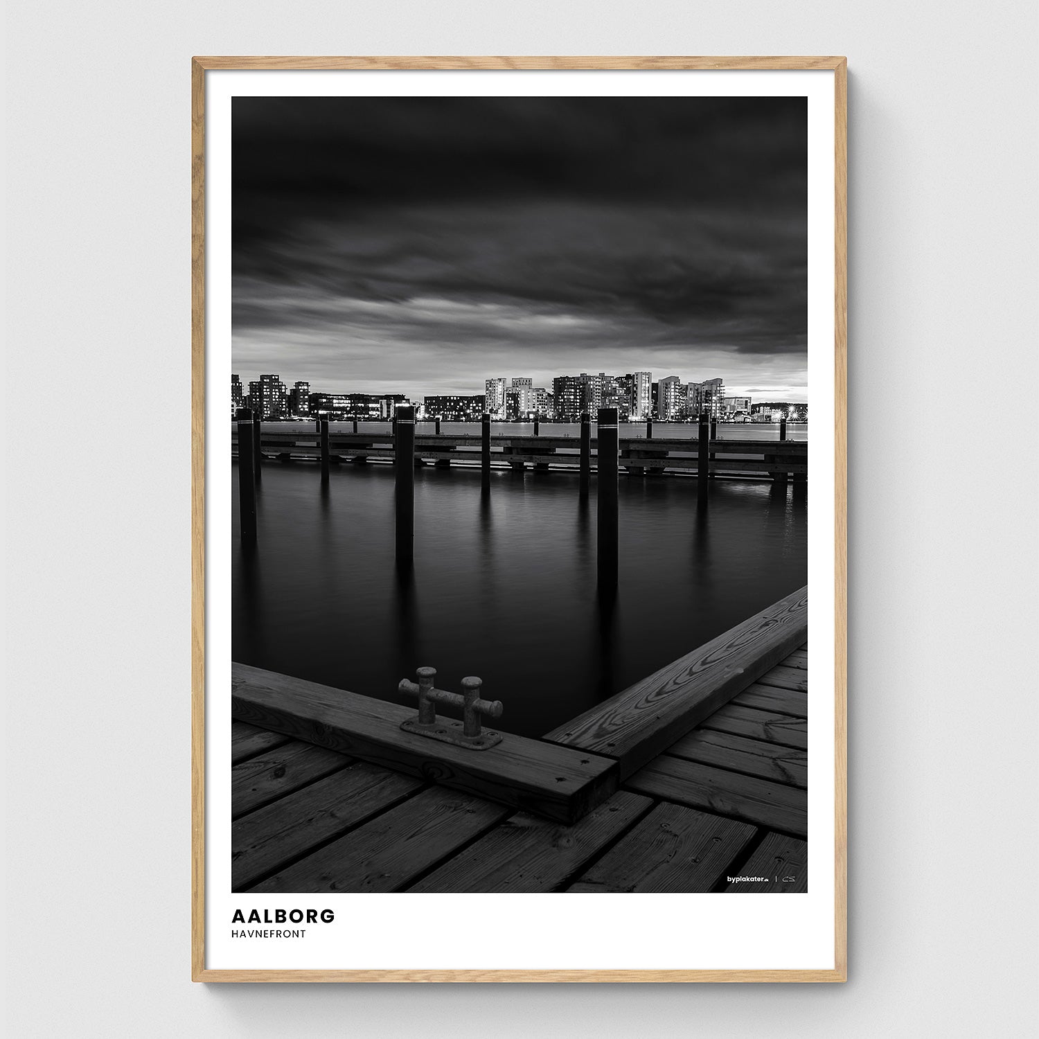 Aalborg Havnefront er et visuelt udtryk for byens moderne udvikling i samspil med dens historiske rødder. Denne plakat fanger den dynamik, der findes langs Limfjorden, hvor gamle industribygninger møder moderne arkitektur og livlige omgivelser. De flotte skyer fra solnedgangen og de spejlende vandoverflader skaber en stemning af både ro og bevægelse, ideel for dem, der ønsker at bringe den urbane energi fra Aalborg ind i deres bolig.
