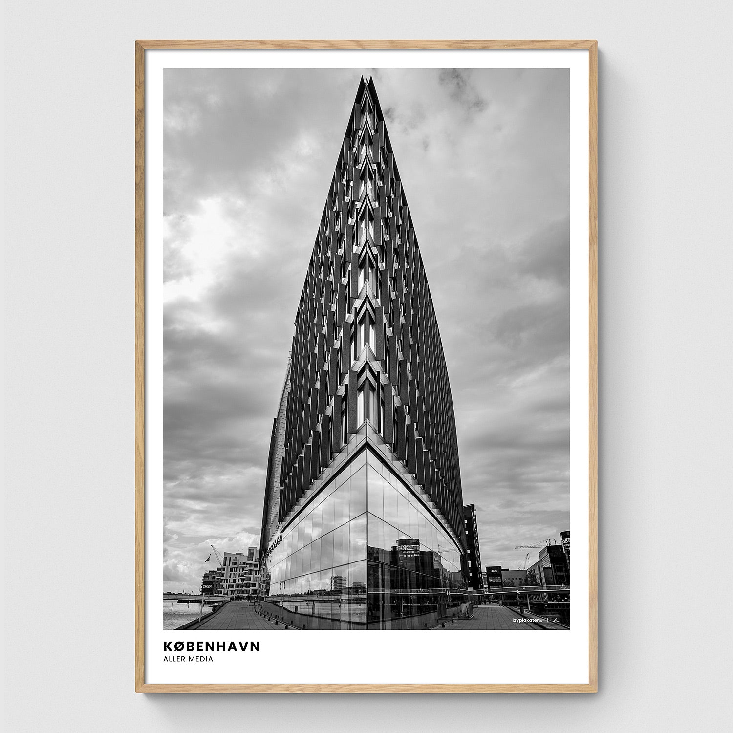 Aller Medias hovedkvarter, beliggende i det centrale København. Denne smukke bygning har blandt sine mange karaktertræk enorme glasoverflader, der skaber smukke refleksioner.