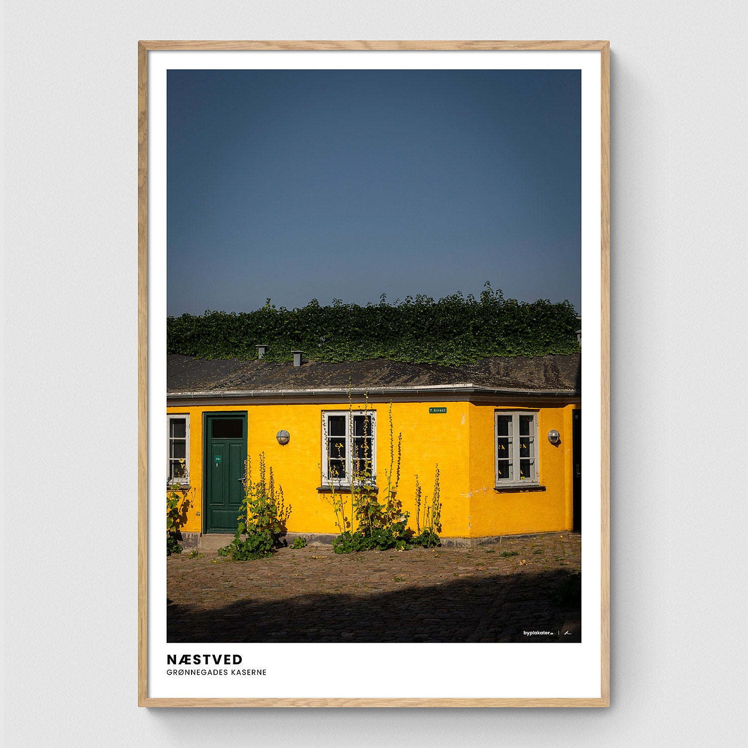En gåtur rundt på Grønnegades Kaserne byder på mange historiske bygninger. Denne plakat har arresten som motiv, og byder på varme farver.