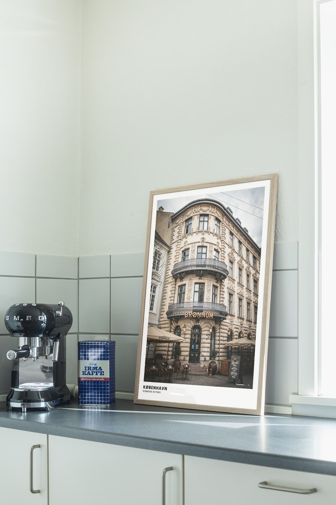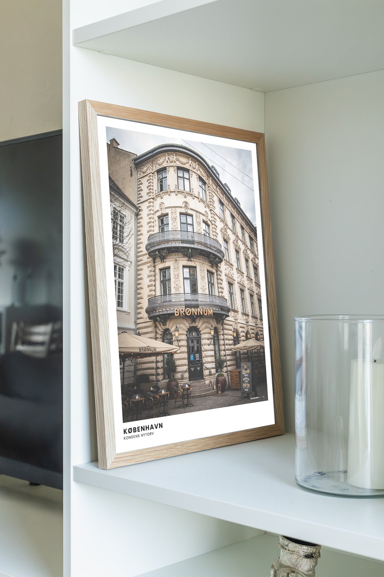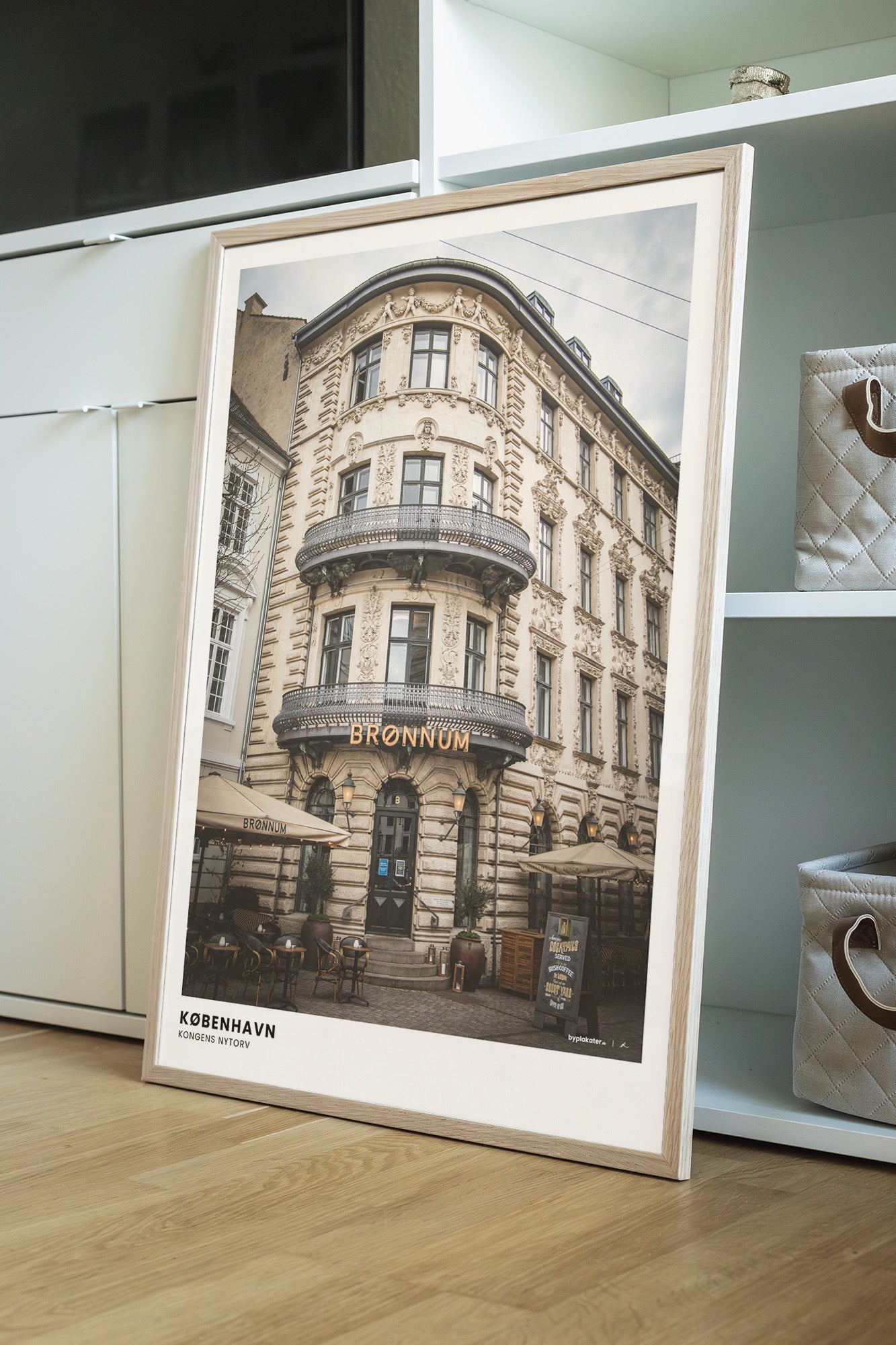 Brønnum Cocktail Bar ligger centralt i København og er især kendt for sin flotte front med historisk dansk arkitektur. En plakat som denne er rig på detaljer og nordisk stemning.