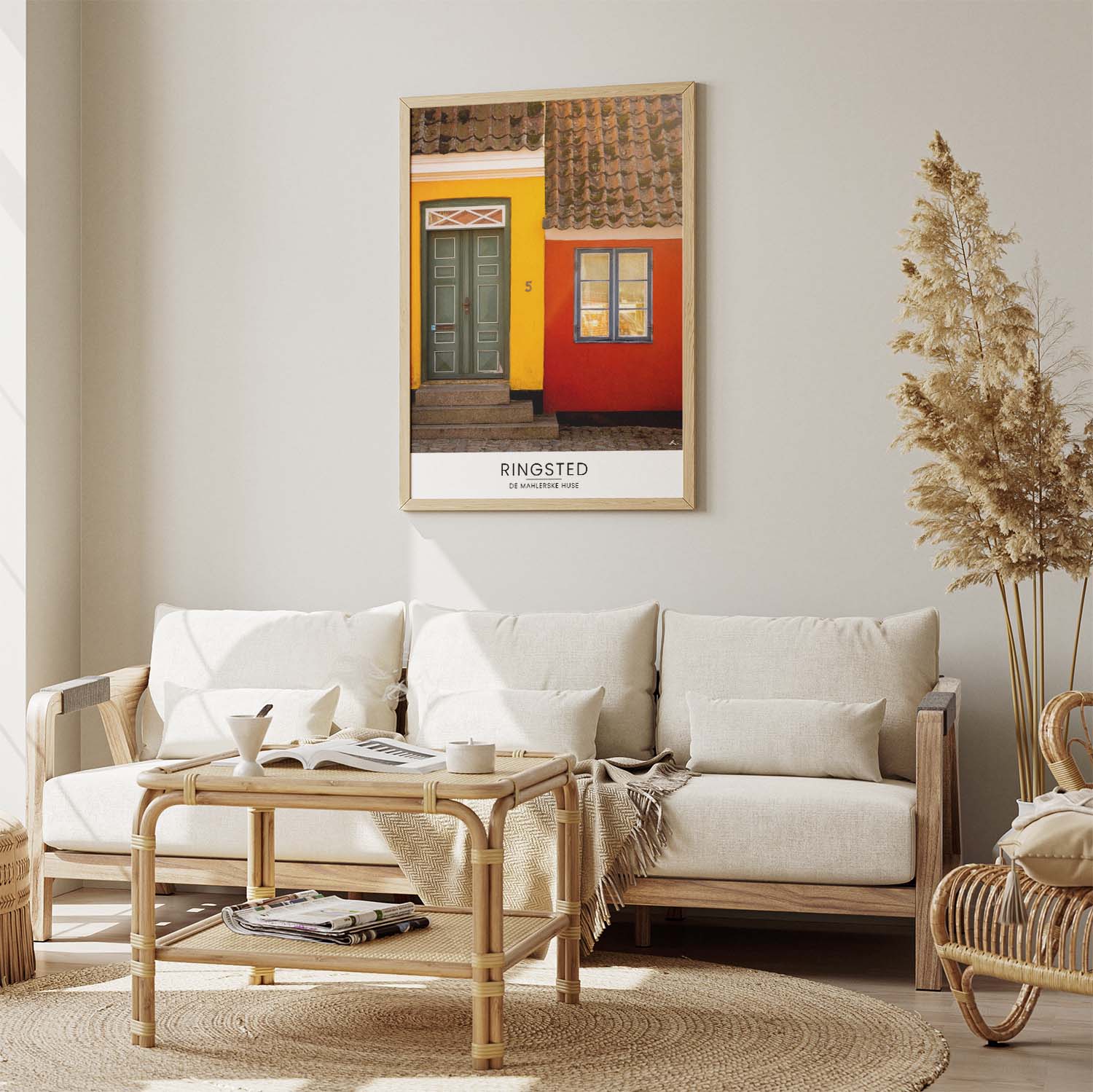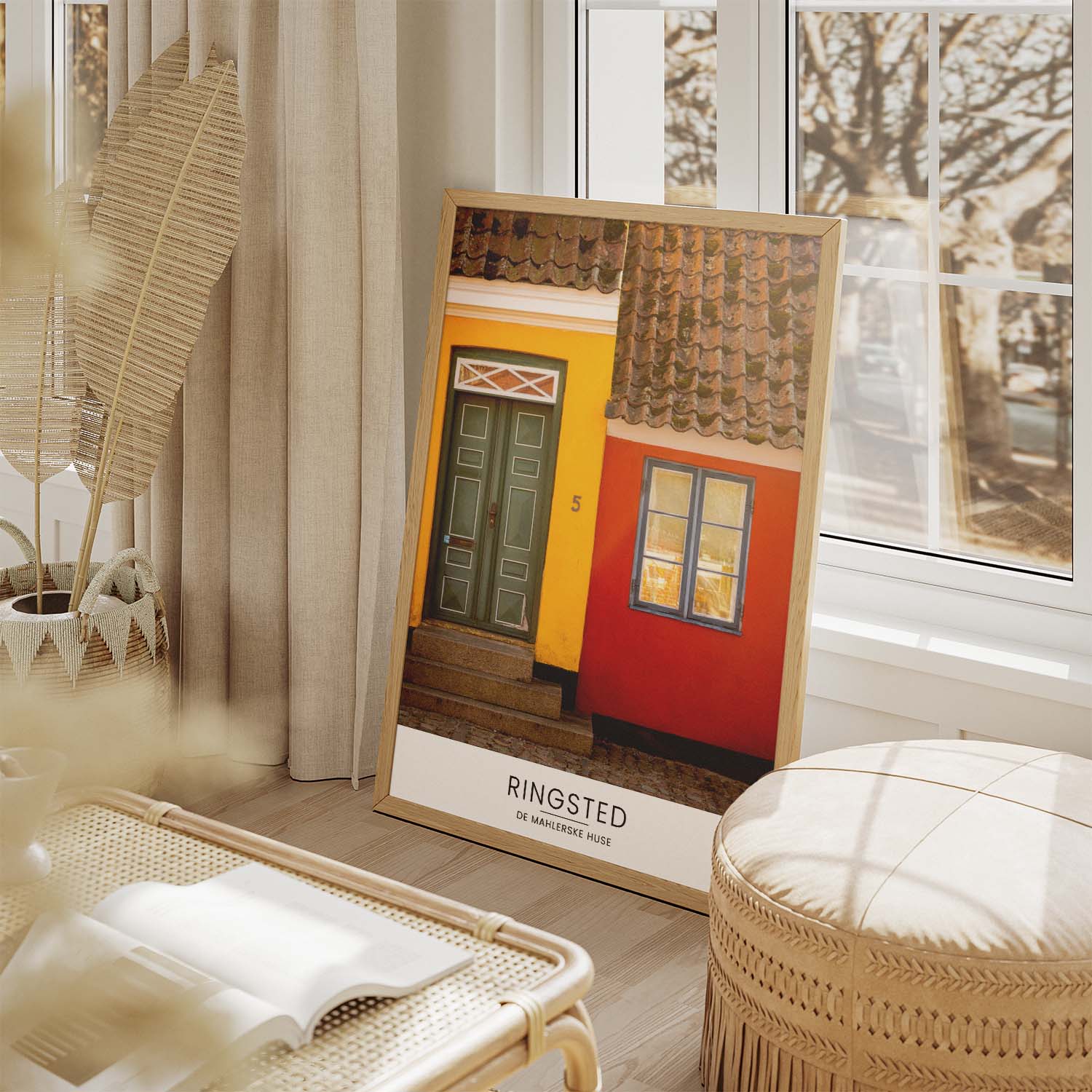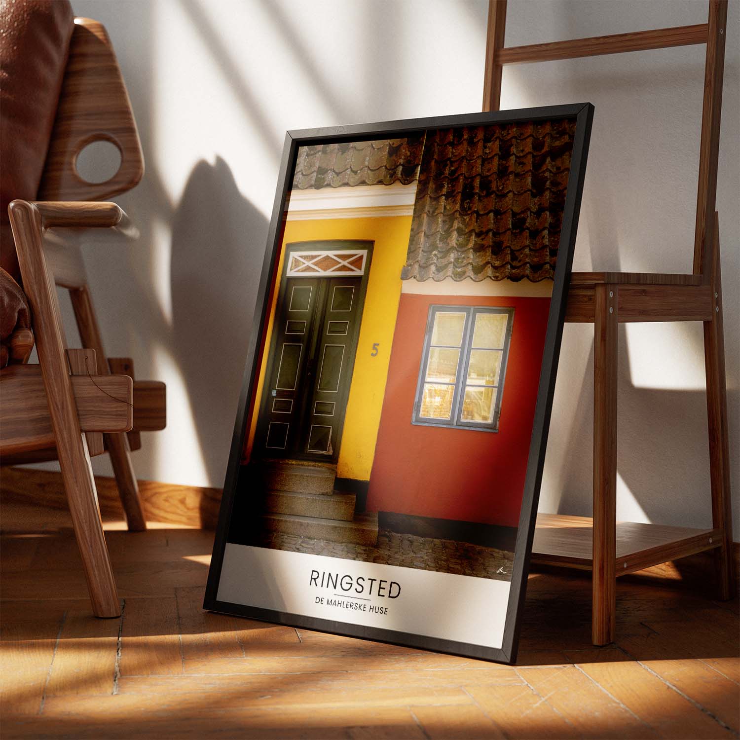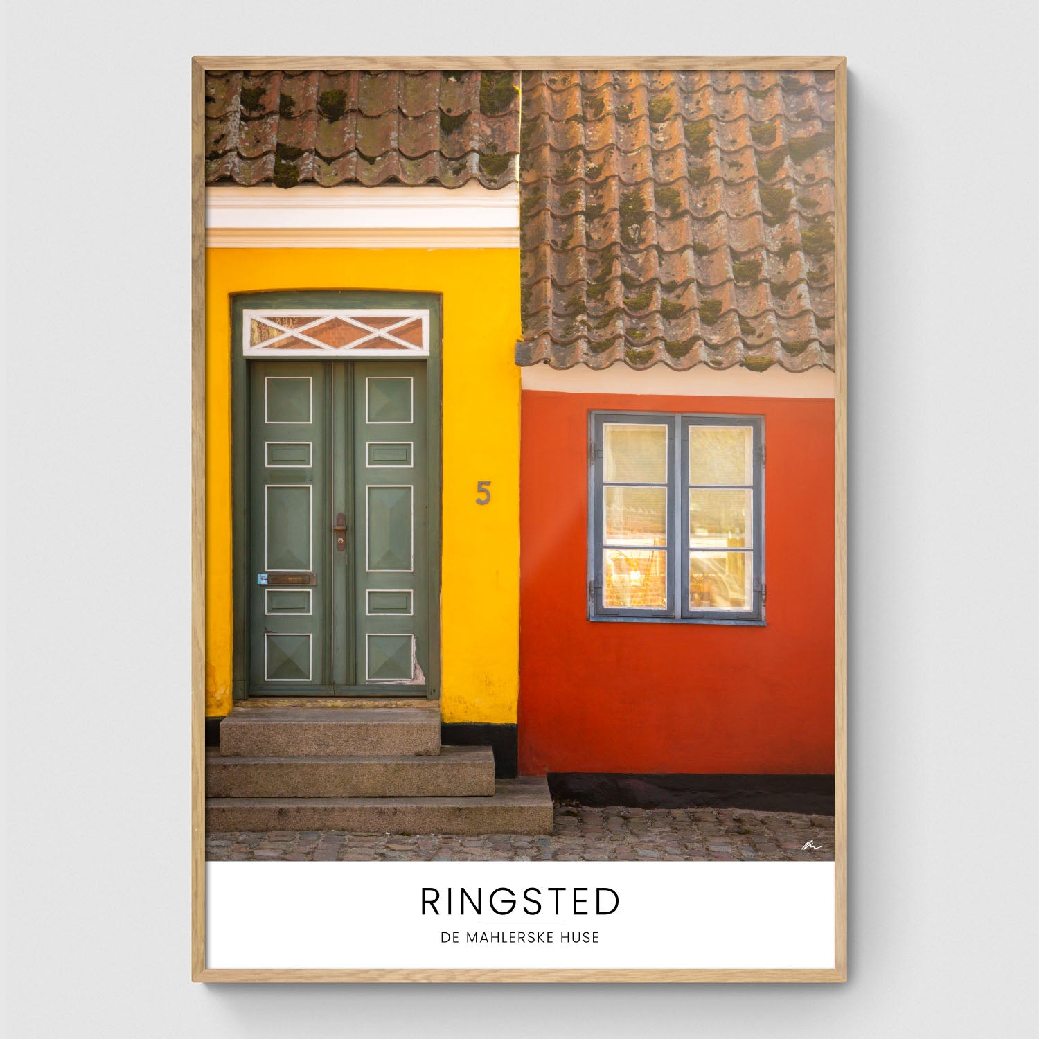 Denne plakat indfanger de charmerende Mahlerske Huse, hvis karakteristiske bindingsværk og farverige facader fortæller en historie om Ringsteds gamle bymiljø. Et smukt motiv, der bringer historisk stemning ind i dit hjem.