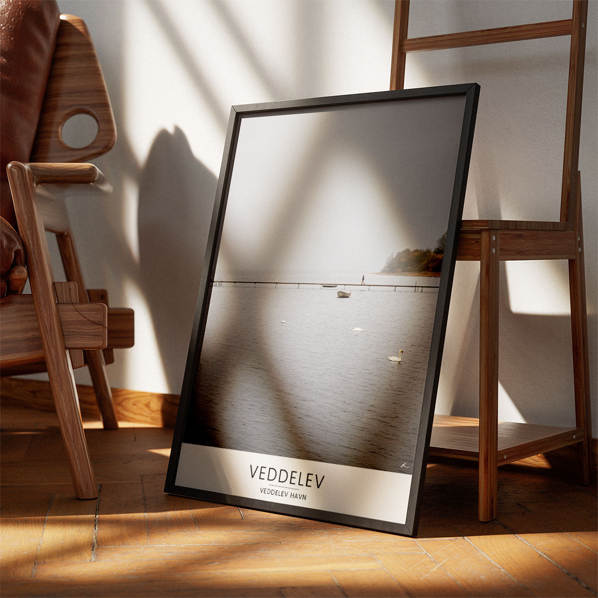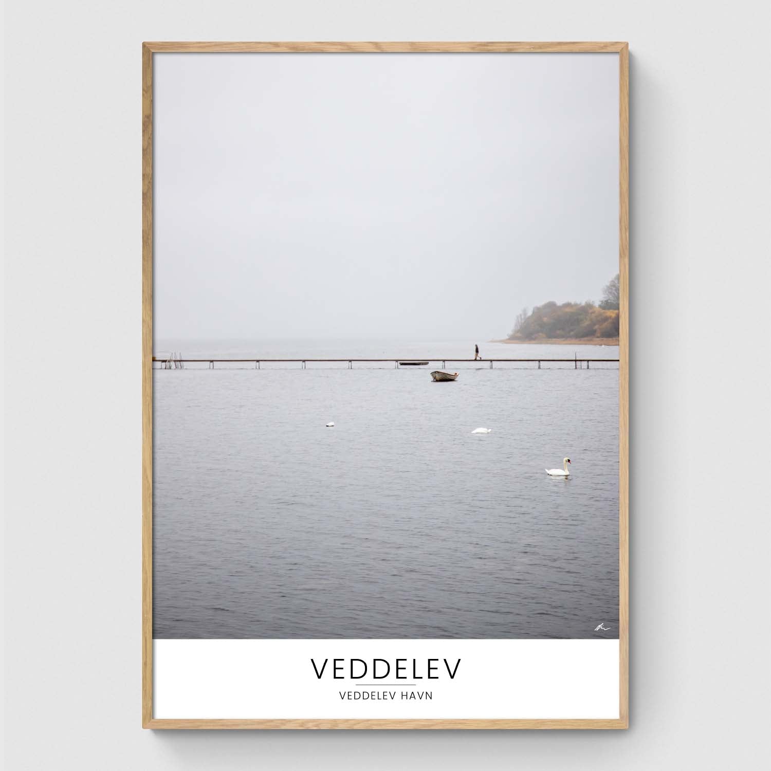 Vandet ved Veddelev Havn nær Roskilde. Jeg så en person på vej over broen i baggrunden, og kombineret med svanerne i vandet, fik jeg taget dette stemningsfulde billede.