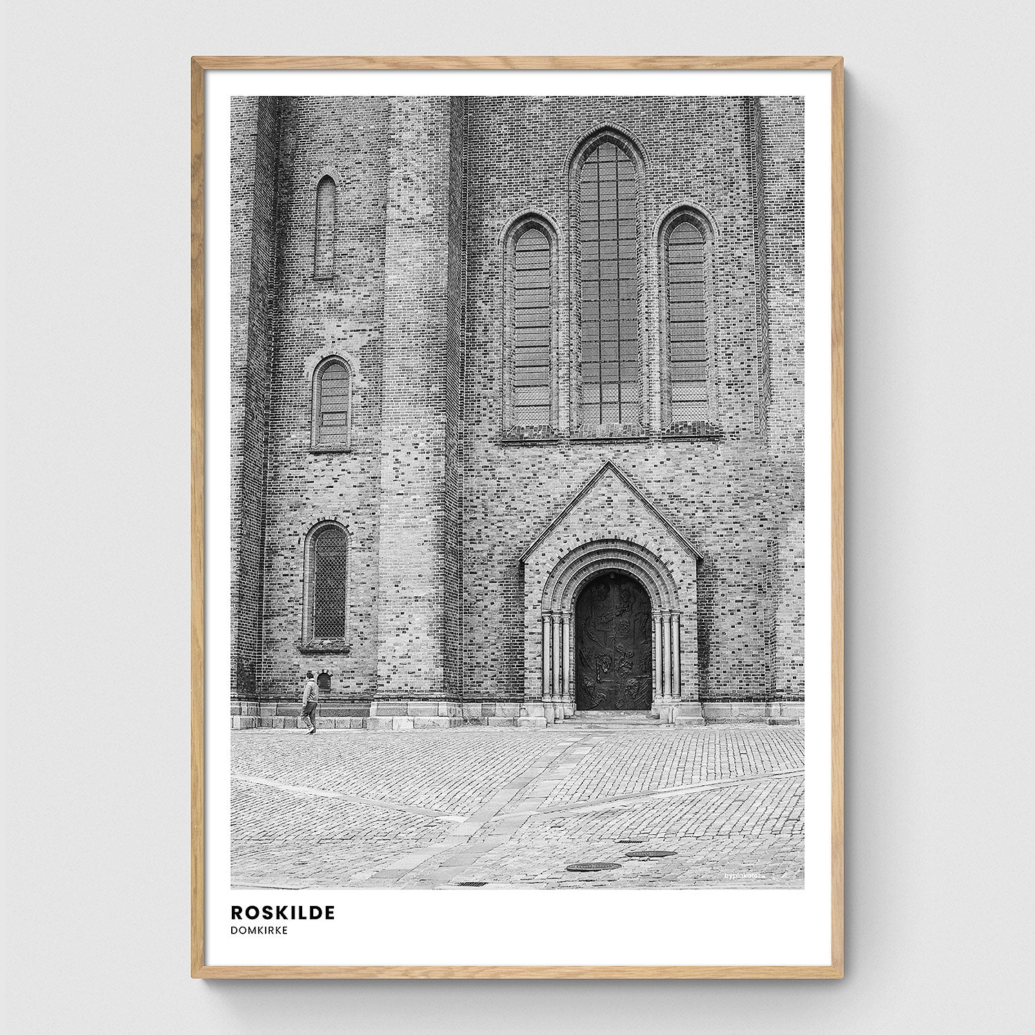 En gåtur langs smukke Roskilde Domkirke. En stilren plakat i sort/hvid, som bringer både arkitektur og historie ind i hjemmet eller kontoret.