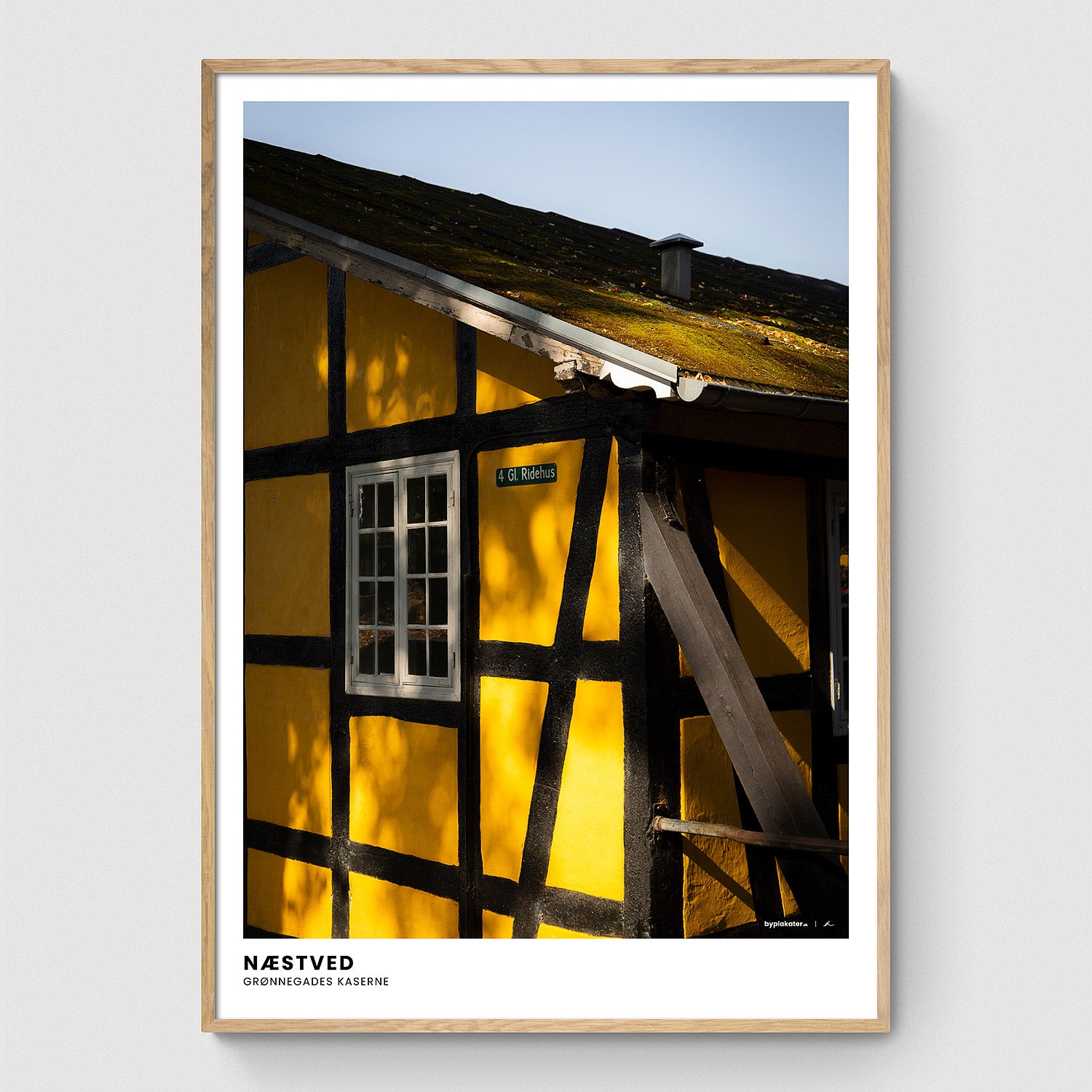 Motivet her viser det gamle ridehus på Grønnegades Kaserne fotograferet på en flot sommerdag. Plakaten hylder især kasernens historiske arkitektur.