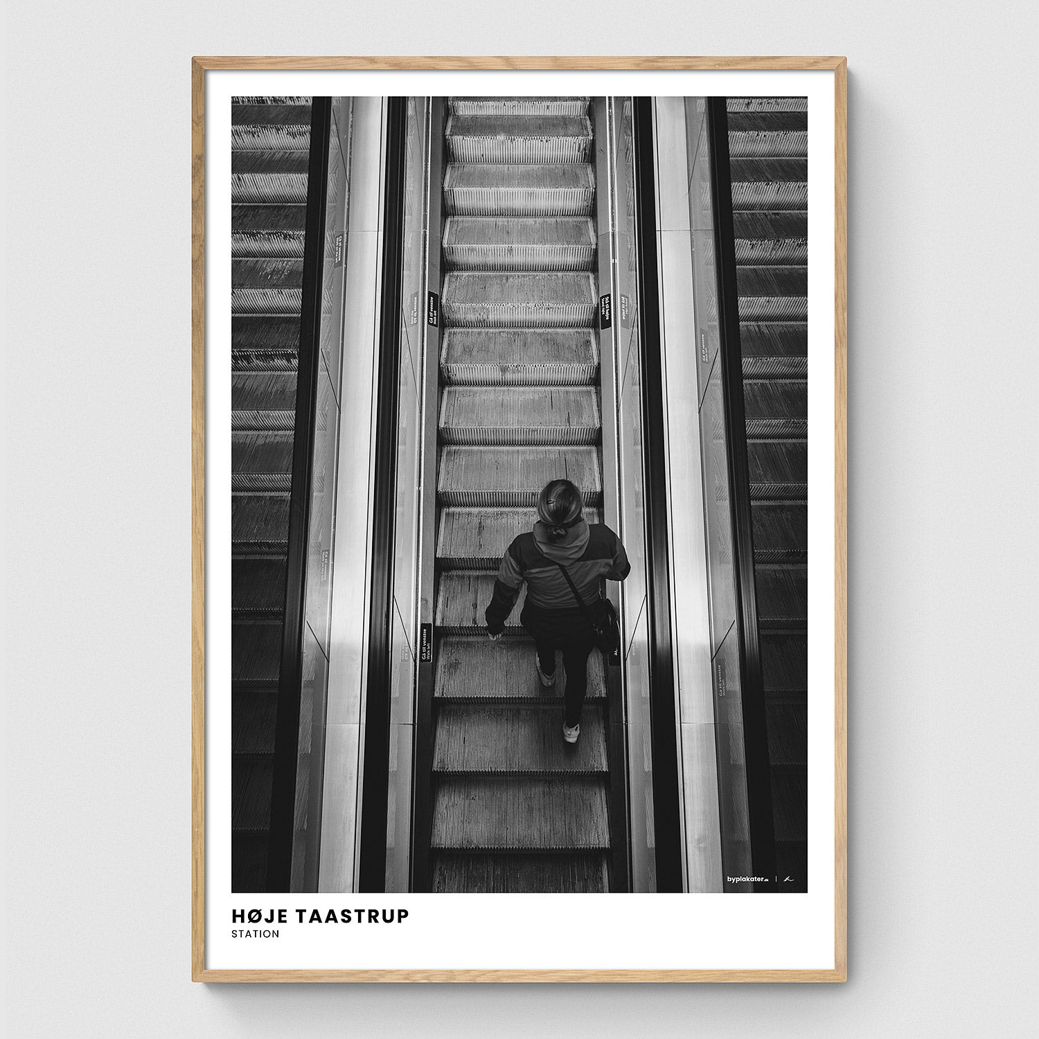 Motiv med en person på vej op ad en af de mange rulletrapper i stationsbygningen. Fokus på linjerne – arkitekturen sluger personen i sin skarpe rytme. Stille, grafisk, næsten filmisk.