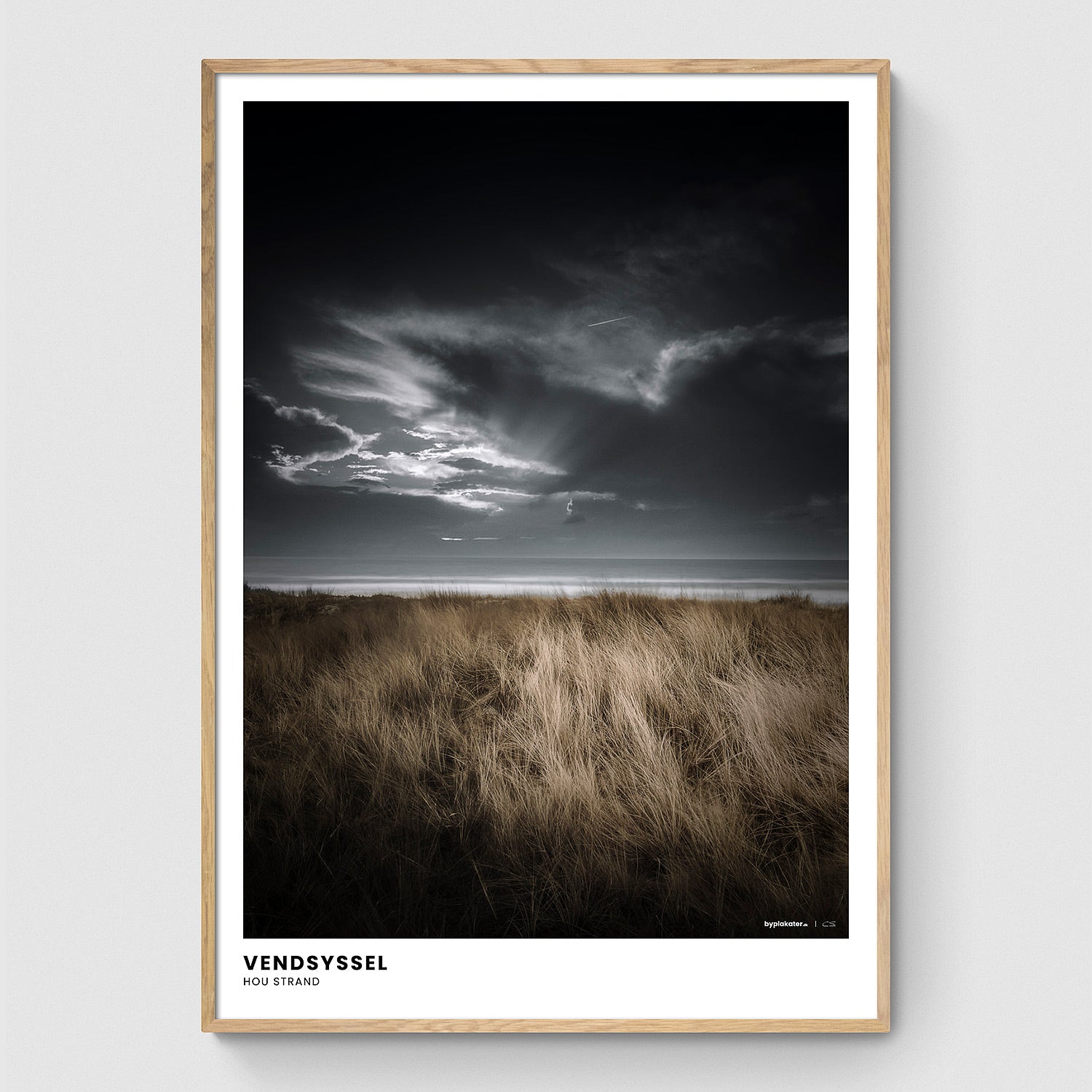 Hou Strand er en perle langs den nordjyske kyst, og denne plakat fanger den rolige skønhed ved havet og landskabet, der strækker sig ud mod horisonten. Det klare vand og de bløde linjer skaber et motiv, der udstråler fred og afslapning, samtidig med at de omgivende landskaber tilføjer en følelse af rummelighed og frihed. Et perfekt valg for dem, der elsker den naturlige skønhed og ro, som findes langs Danmarks kyster.