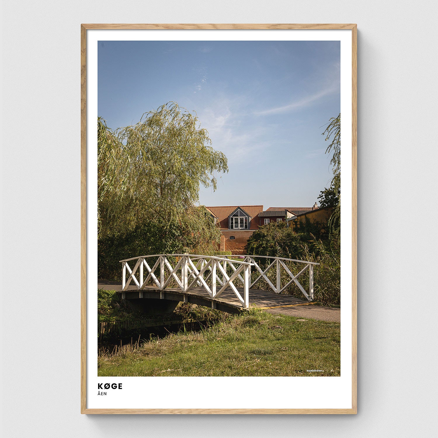 Langs Køge å finder man flere af disse hvide broer, som passer smukt ind i det naturskønne område, som nærmest er en lille oase i Køge by. Dette motiv har sommerlig stemning og natur.