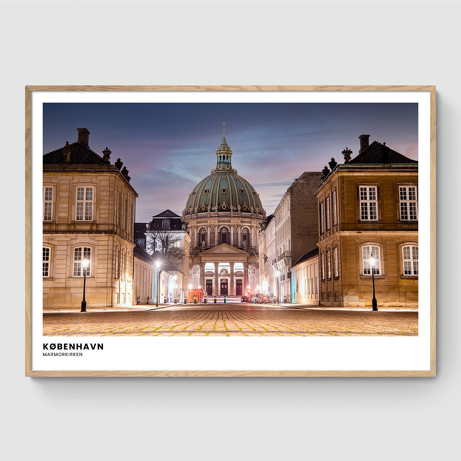 Vores rammer er håndlavede i egetræ på vores lokale trykkeri, og findes i farverne lys, mørk og sort. Alle størrelser indrammes med rigtigt glas, bortset fra 70x100 cm, som indrammes med en høj kvalitet af plexiglas. Se vores rammer.