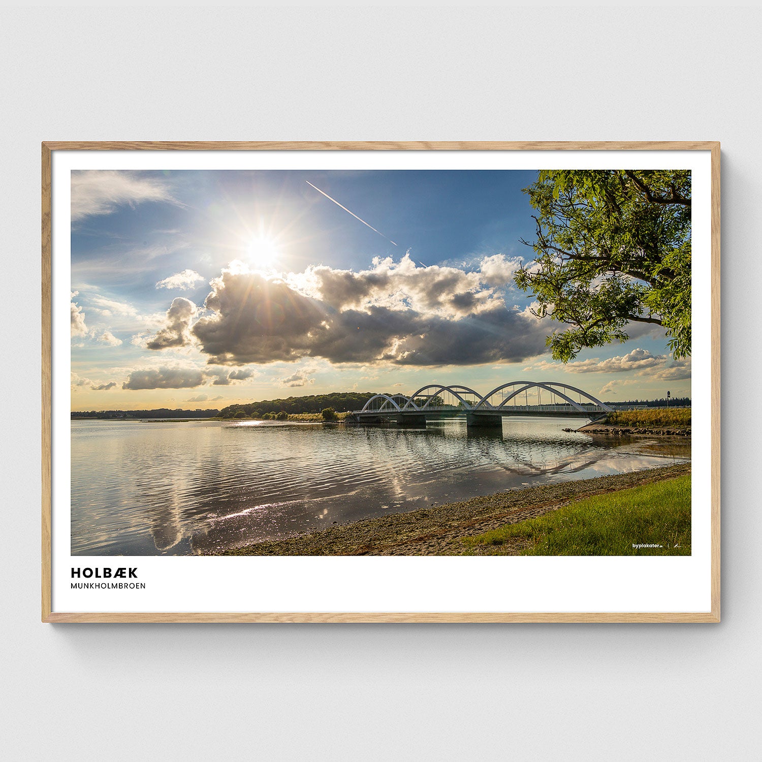 Den smukke Munkholmbroen tæt ved Holbæk, som her er fotograferet en tidlig sommeraften, hvor himlen både bød på sol og skyer.