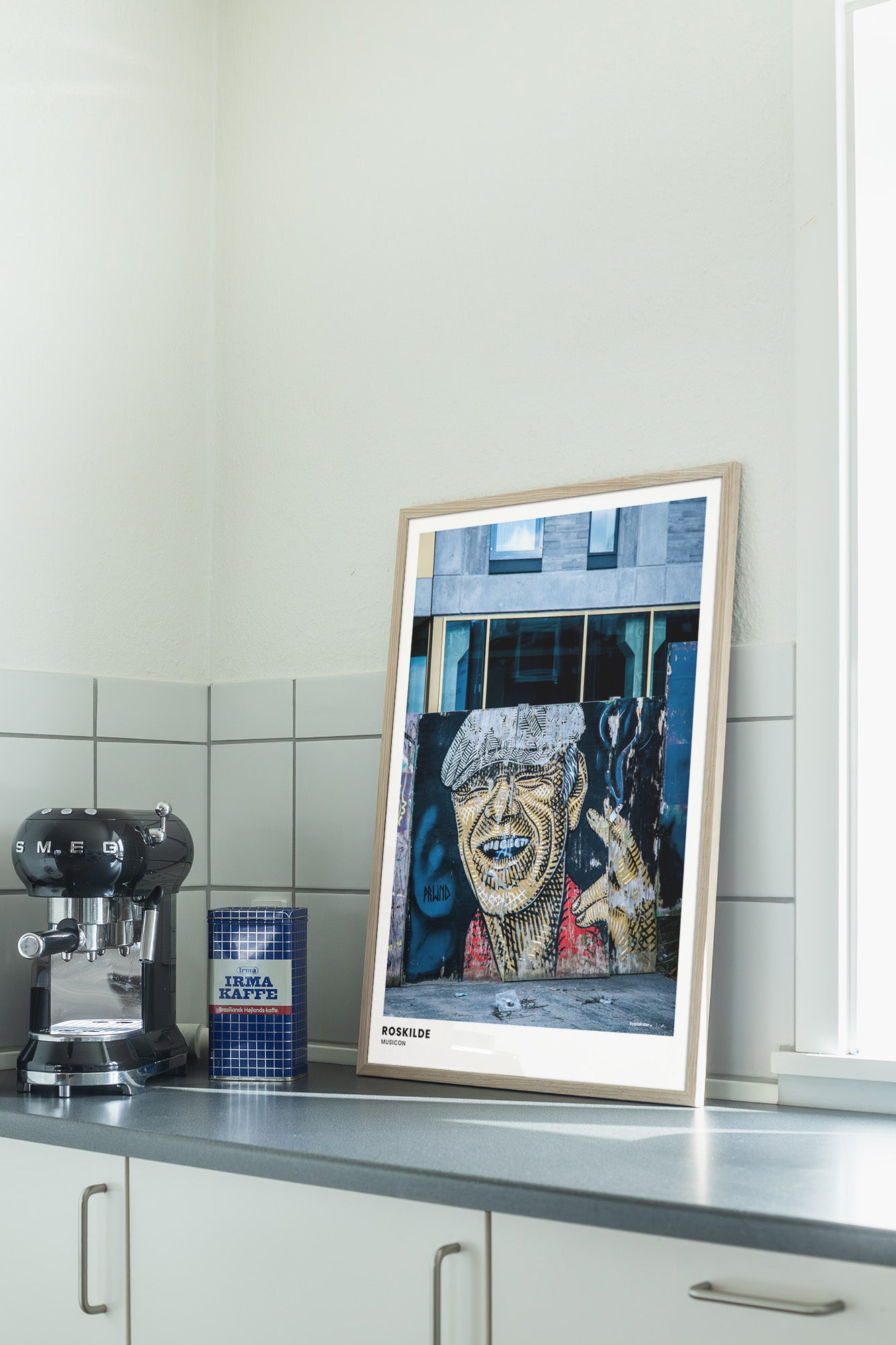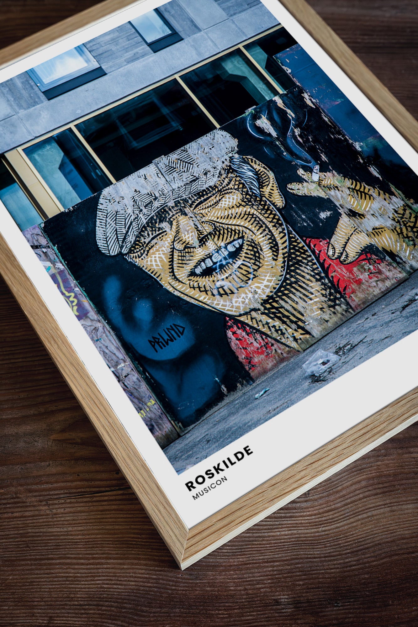 Musicon i Roskilde er fyldt med musik og kultur - bl.a. har rockmuseet Ragnarock haft et særligt fokus på Kim Larsen. Derfor er det heller ikke underligt, at et flot værk som dette findes midt i det charmerende og rå område.