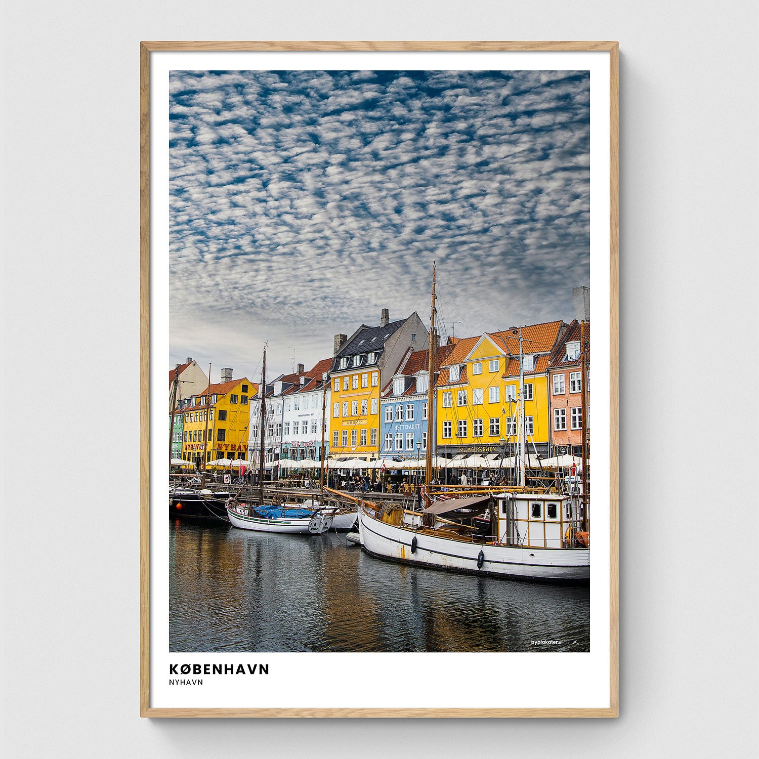 Nyhavn er muligvis et af de mest genkendelige steder i Danmark. Denne plakat hylder det historiske område, som kan dateres helt tilbage til 1673, hvor det oprindelige navn var "Den Nye Havn". Som et alternativ til den gamle havn, var Nyhavn en yderst travl erhvervshavn, hvor skibe fra mange steder i verden lagde til.