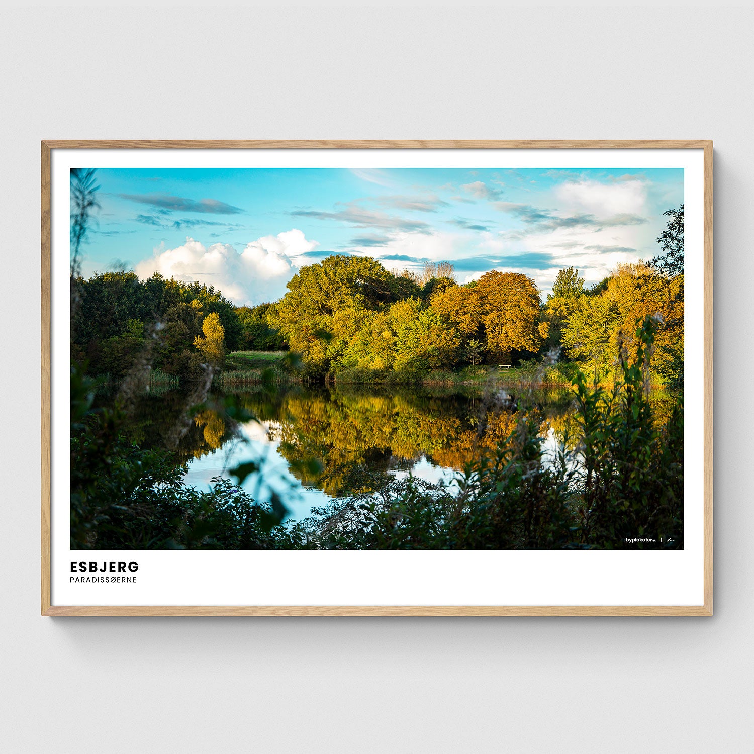 Er man i Esbjerg, så er Paradissøerne bestemt et besøg værd. Skøn natur og en fantastisk gåtur rundt langs stierne. Denne plakat hylder områdets flotte farver i efteråret.