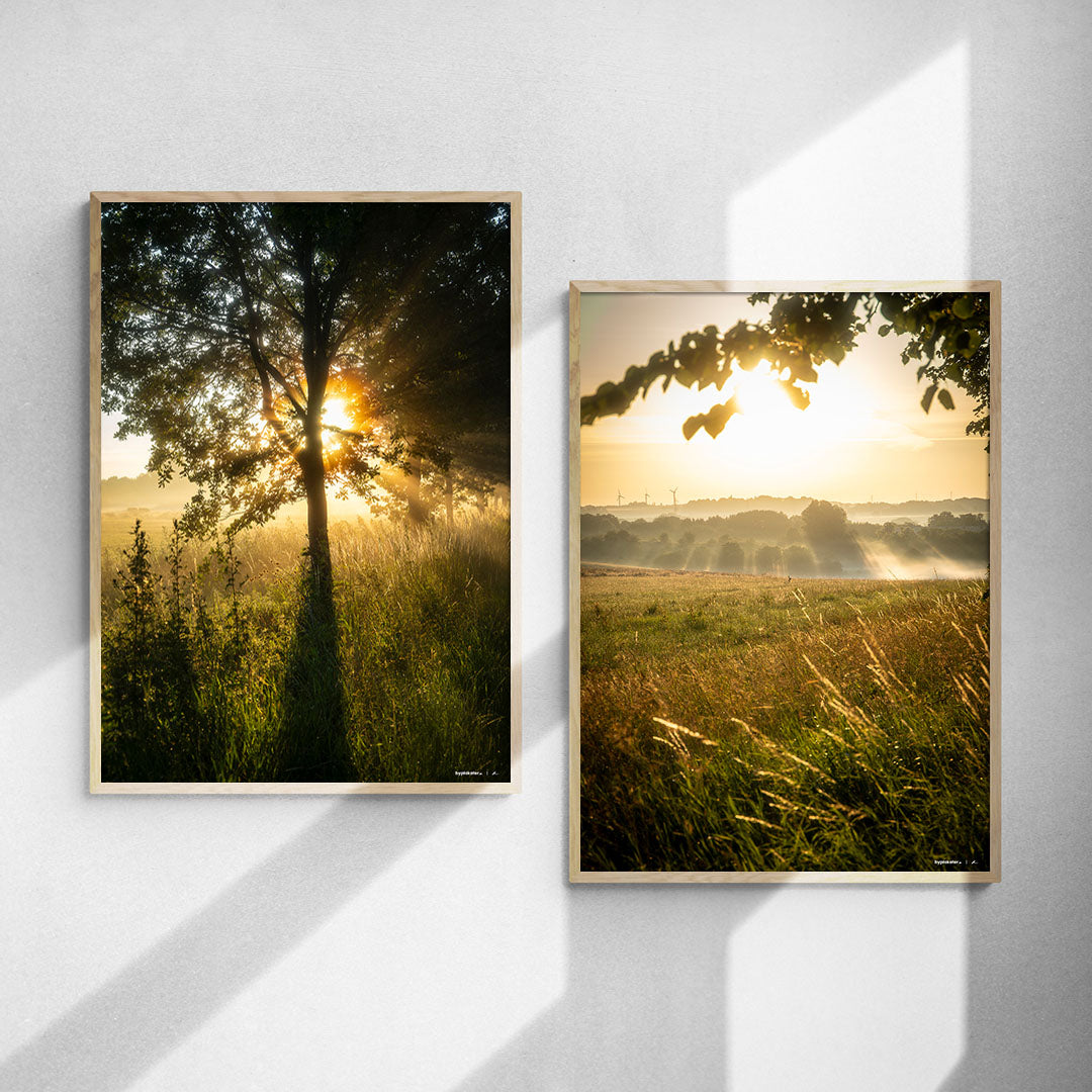 Dette plakatsæt hylder alt det fantastiske ved en smuk solopgang - stemningen, lyset og starten på en ny dag. Disse billeder er taget ved Lejre på Midtsjælland.