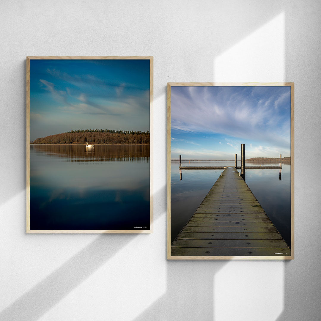 Sættet består af plakaterne Svane ved Herslev Strand II og Stille vand ved badebroen II.