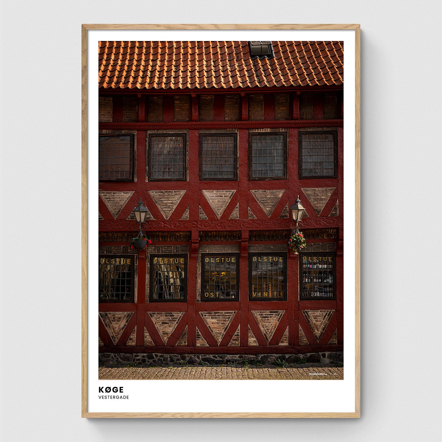 I Køges gamle bydel finder man Richters Ølstue, som nok er blandt byens mest genkendelige gamle bygninger. Vestergade er generelt fyldt med flot historisk arkitektur, og plakaten her har netop til måls at hylde Køge bys rige historie.