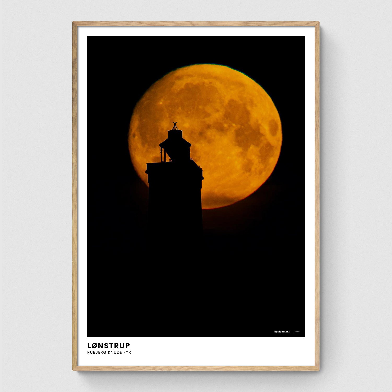Rubjerg Knude Fyr er et særdeles kendt vartegn i Nordjylland, og ligger ca. 3 km syd for Lønstrup. Dette helt unikke billede er taget med fyret i silhuet og månen i baggrunden.
