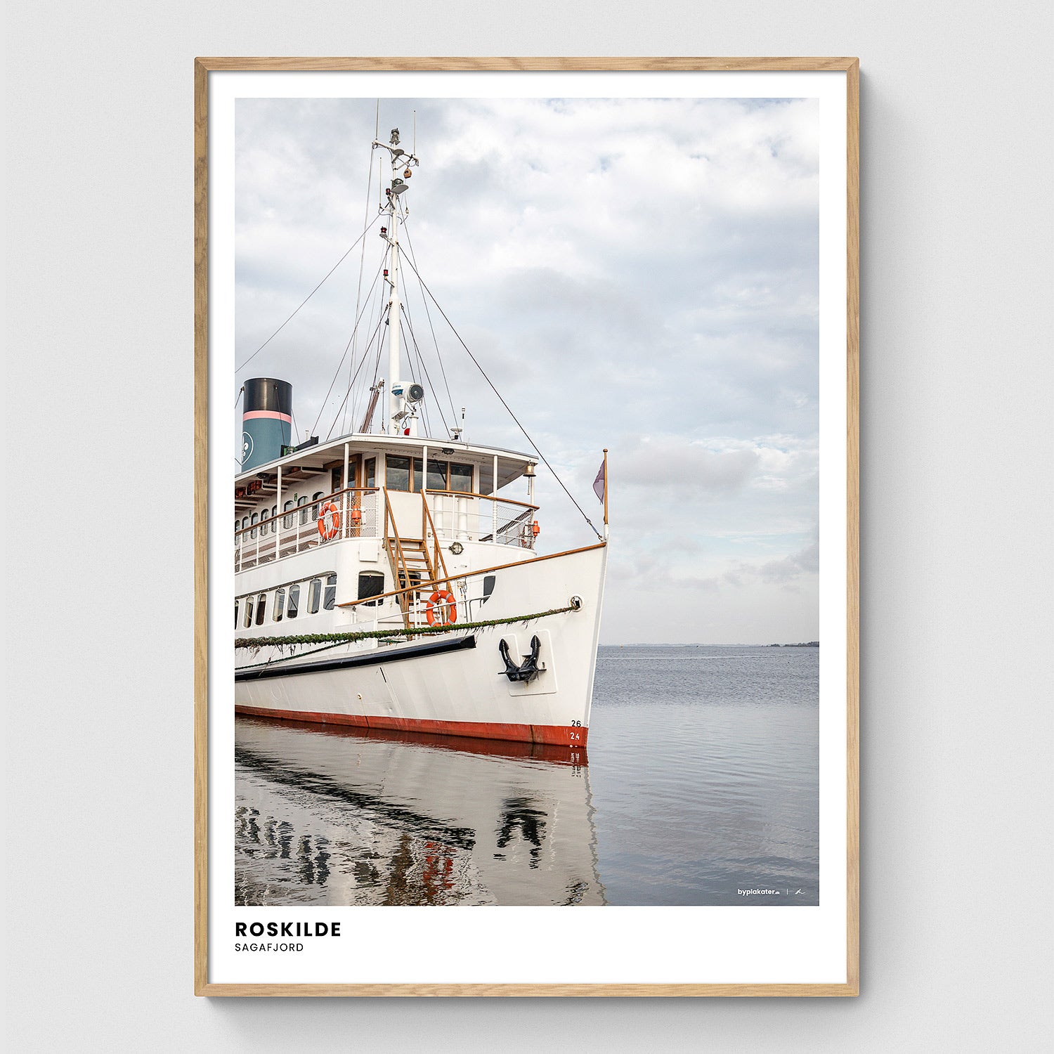 Sagafjord - også kendt som den sejlende restaurant - ligger ved smukke Roskilde Havn, og er både en velkendt restaurant samt fantastisk oplevelse at sejle med. Denne plakat har fokus på et maritimt og nordisk udtryk.