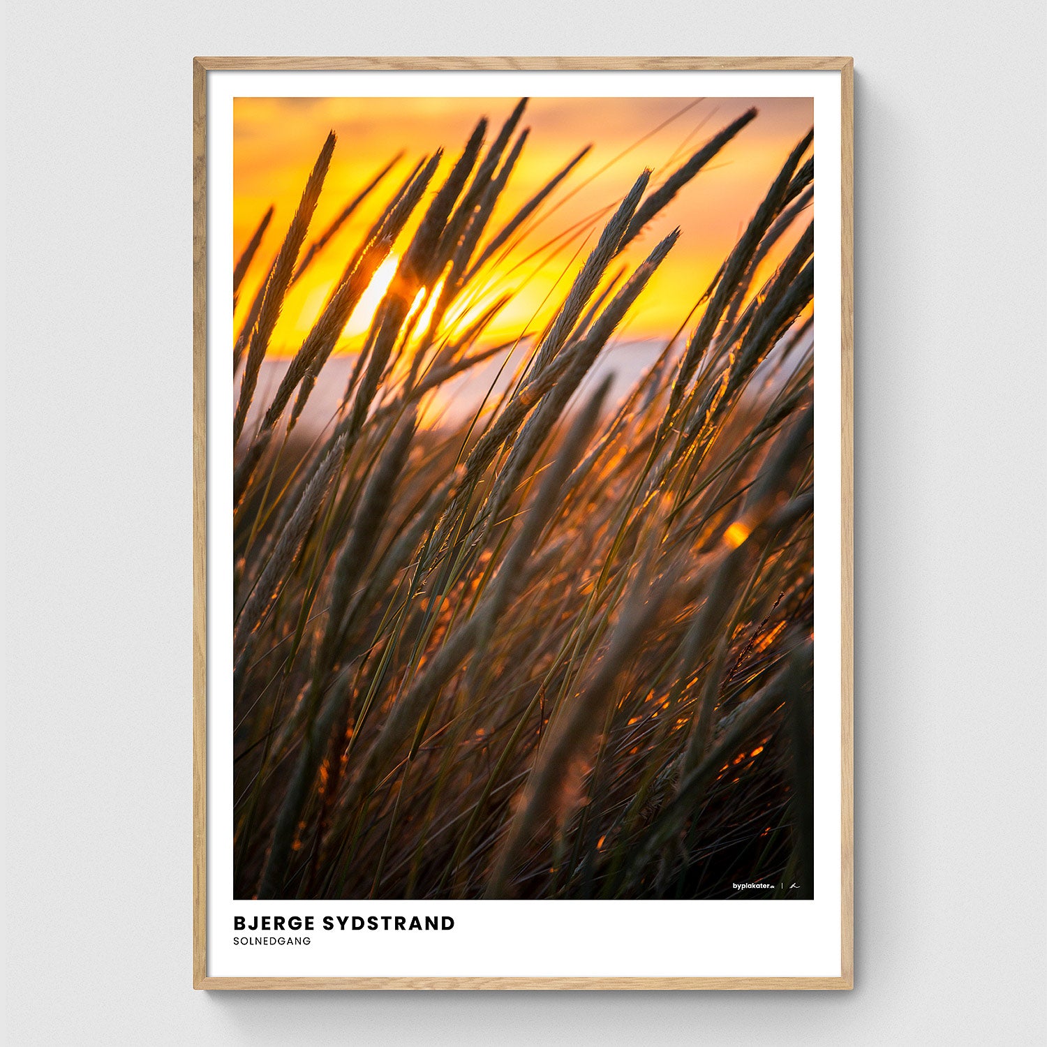 En solnedgang ved stranden kan noget helt særligt. Her har jeg fanget en flot solnedgang en smuk sommeraften. Billedet er taget igennem nogle flotte siv, som giver billedet en smuk dybde og naturstemning.