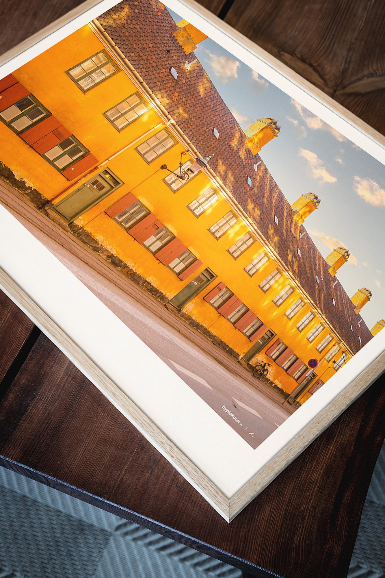 Vores rammer er håndlavede i egetræ på vores lokale trykkeri, og findes i farverne lys, mørk og sort. Alle størrelser indrammes med rigtigt glas, bortset fra 70x100 cm, som indrammes med en høj kvalitet af plexiglas. Se vores rammer.