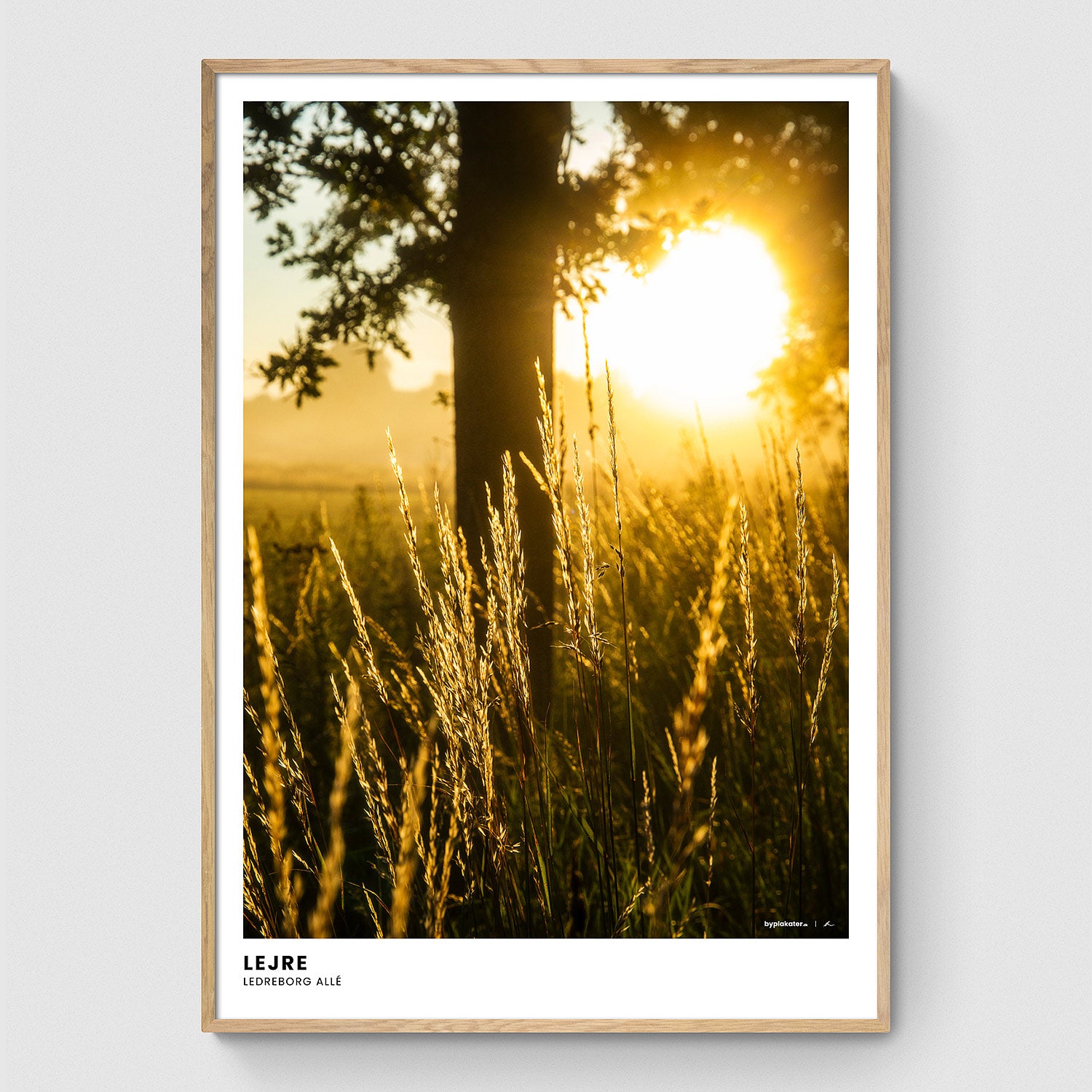 Vores rammer er håndlavede i egetræ på vores lokale trykkeri, og findes i farverne lys, mørk og sort. Alle størrelser indrammes med rigtigt glas, bortset fra 70x100 cm, som indrammes med en høj kvalitet af plexiglas. Se vores rammer.