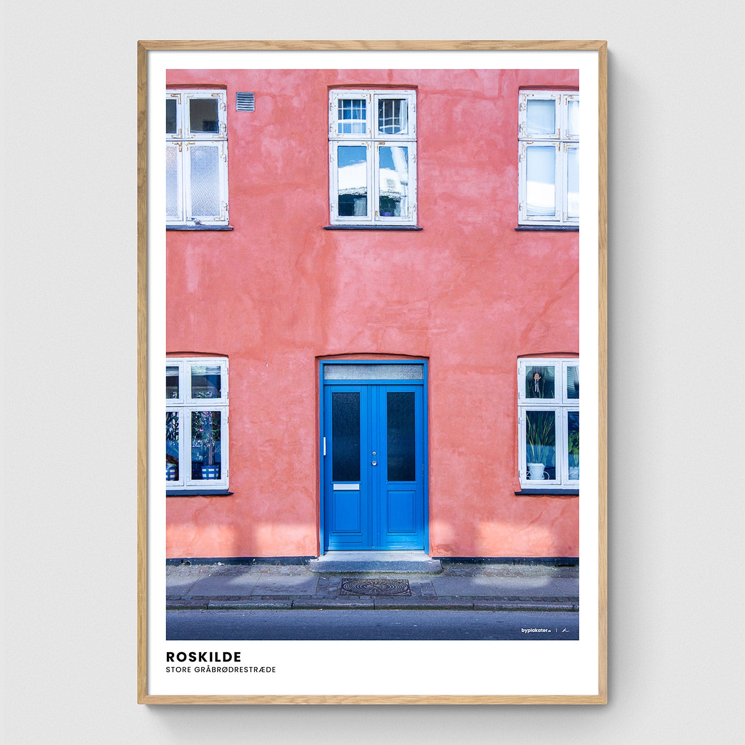 Vores rammer er håndlavede i egetræ på vores lokale trykkeri, og findes i farverne lys, mørk og sort. Alle størrelser indrammes med rigtigt glas, bortset fra 70x100 cm, som indrammes med en høj kvalitet af plexiglas. Se vores rammer.